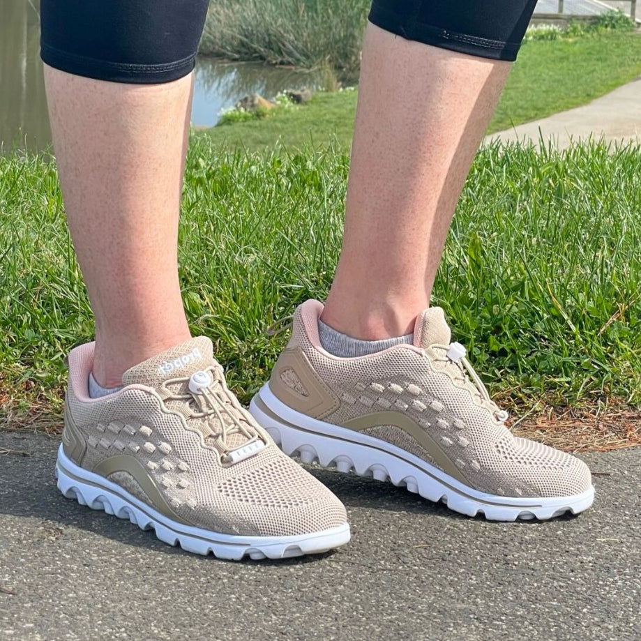 TravelActiv Axial Womens WAT092 are Podiatrist designed shoes. The lightweight outsole only available from Propét and ready for your active lifestyle. Knit in texture and great color combos make Axial a must have shoe. Engineered mesh upper with mesh lining is breathable yet supportive. The firm heel counter adds more support for walking comfort.